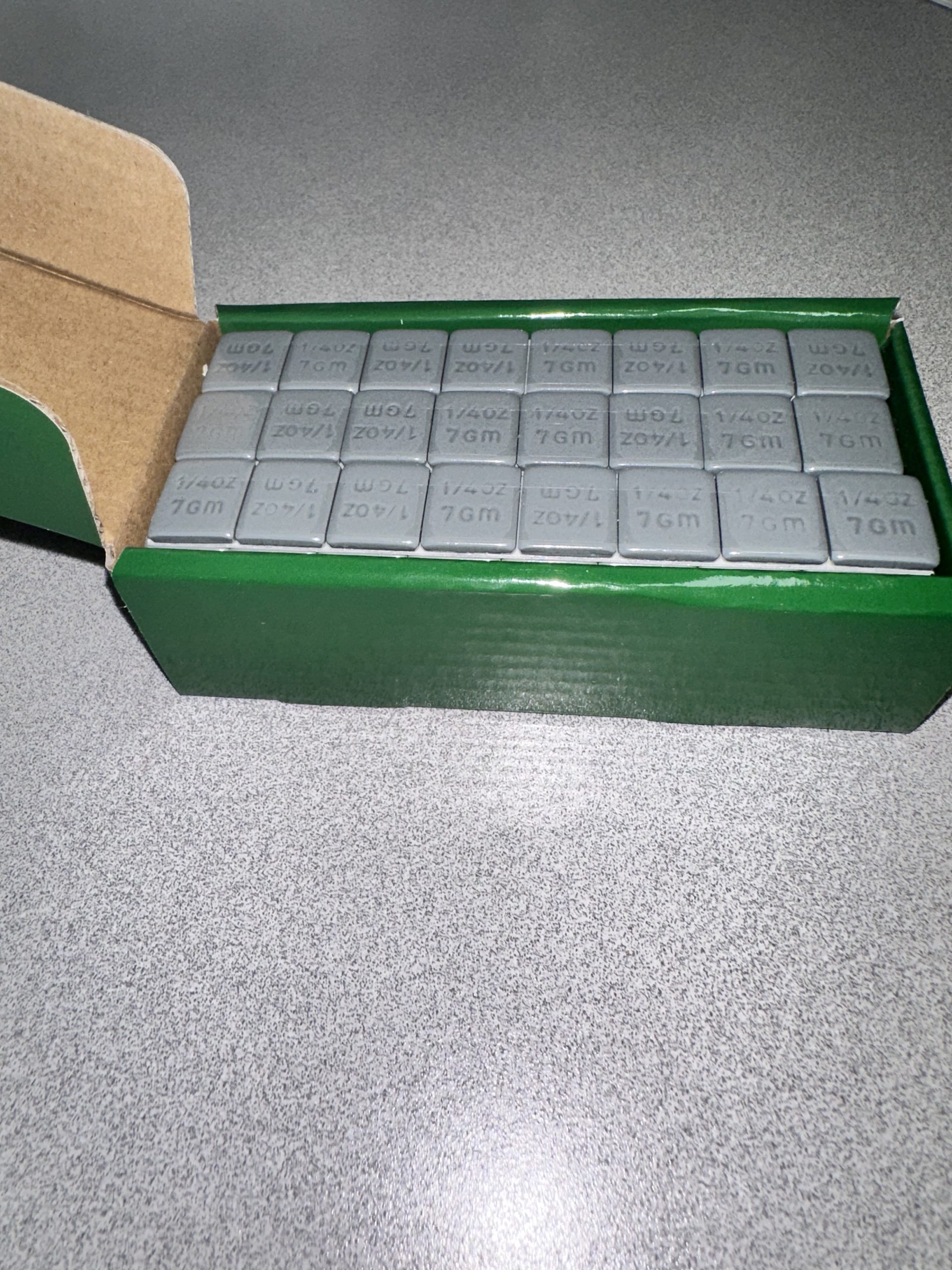 1/4 oz Gray Stick-on Weights on White USA Tape, 240 Segments/Box